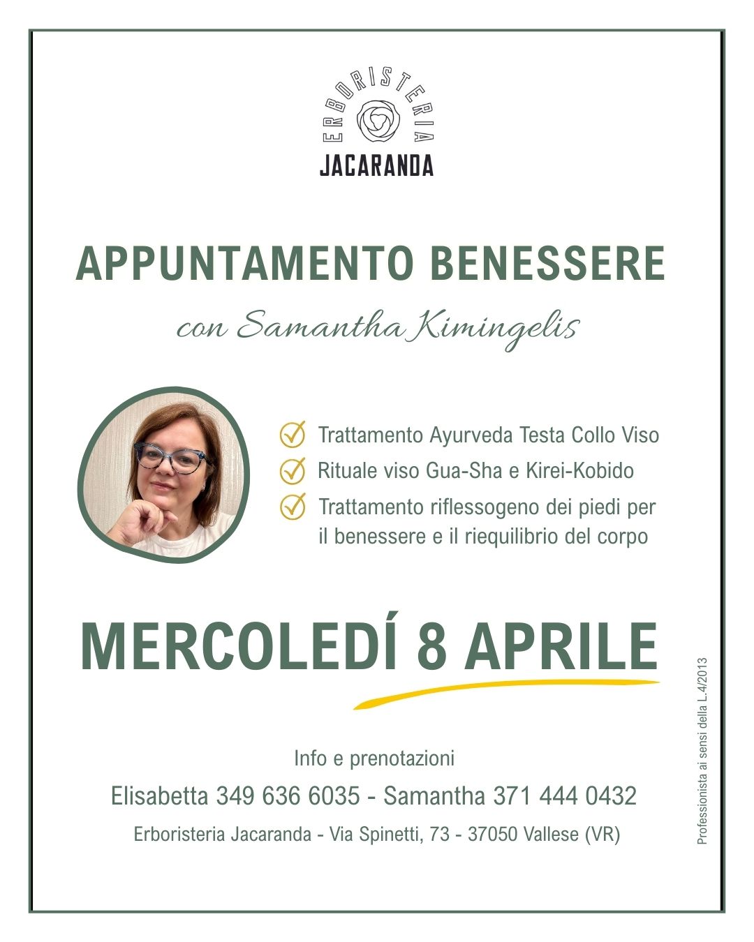 operatrice olistica ad indirizzo corporeo energetico, specializzata in Tecniche Ayurveda, e docente in corsi di formazione professionale per operatori olistici. Mi occupo di accompagnare e supportare TE, DONNA, in un percorso di benessere completo, dove ogni trattamento è pensato per mantenere il buono stato di salute e per farti ritrovare l’equilibrio tra corpo, mente ed emozioni, in un viaggio verso una vita più armoniosa e piena di energia!